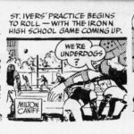 In 1987, in the “Steve Canyon” strip he memorialized the Stivers vs. Steele sports rivalry (St. Ivers vs. Ironn).