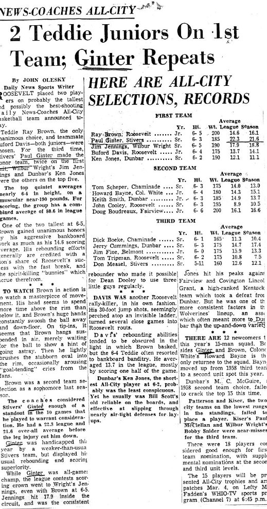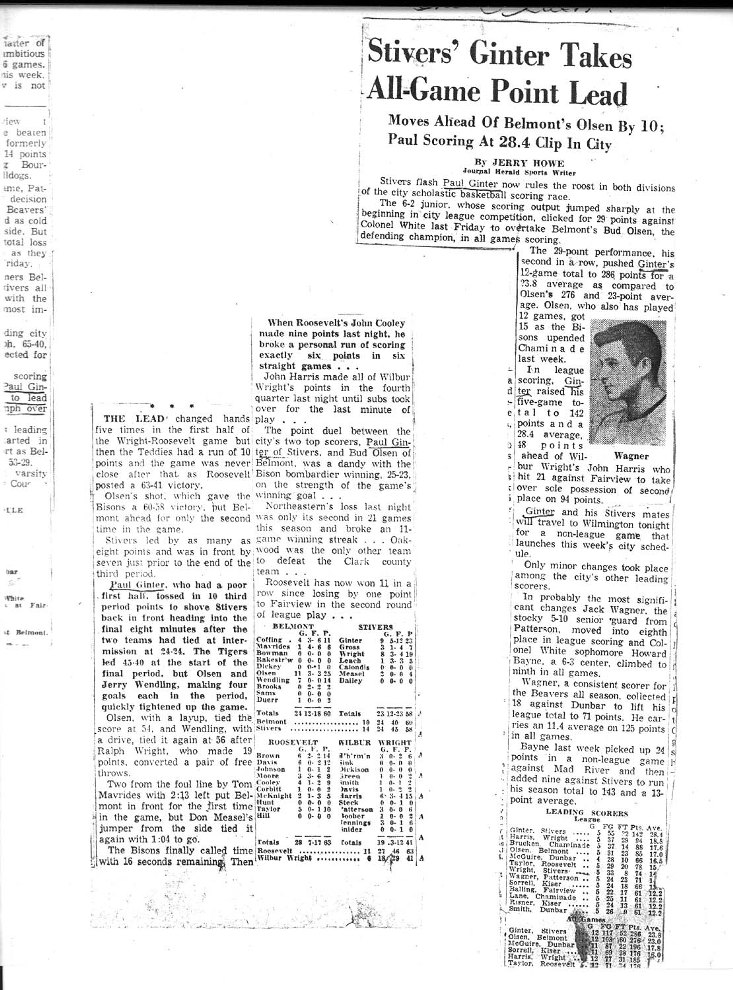 Ginter remained the all-time Stivers scoring leader until 1972 and now ranks third behind Sanders and Mitchell.