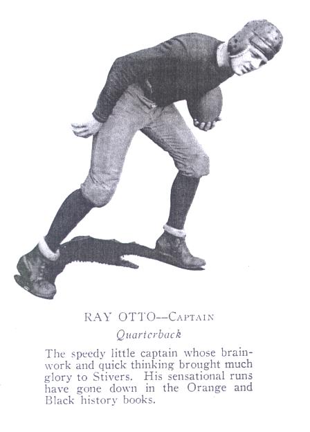 It was a touchdown run by Otto in a 7- 6 victory over Knoxville, TN that allowed the Tigers to claim the National Championship in 1924. Stivers trailed most of the game, which was played in deep mud from heavy rains, until Otto’s run and the extra point sealed the win. For many years at Stivers and in Dayton the touchdown run was referred to simply as “Otto’s plunge”. He was named in 1924 – 1925 the City of Dayton’s “Outstanding Player of the Year”.