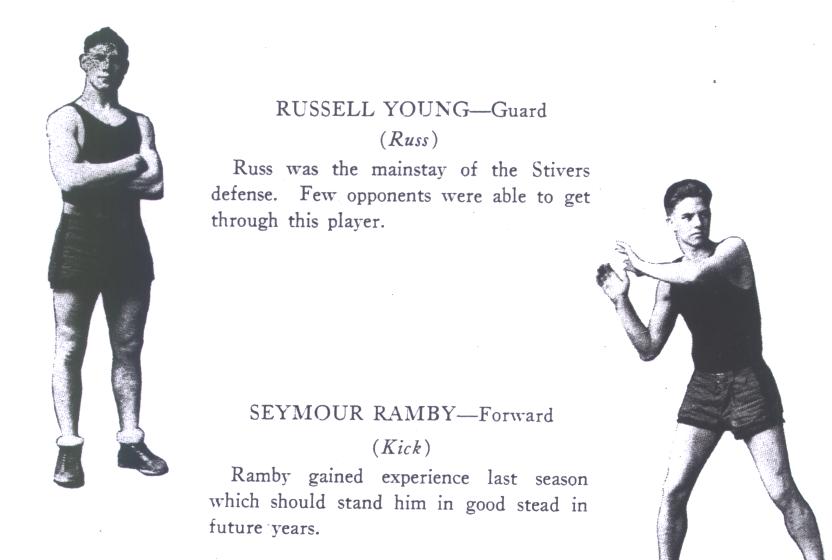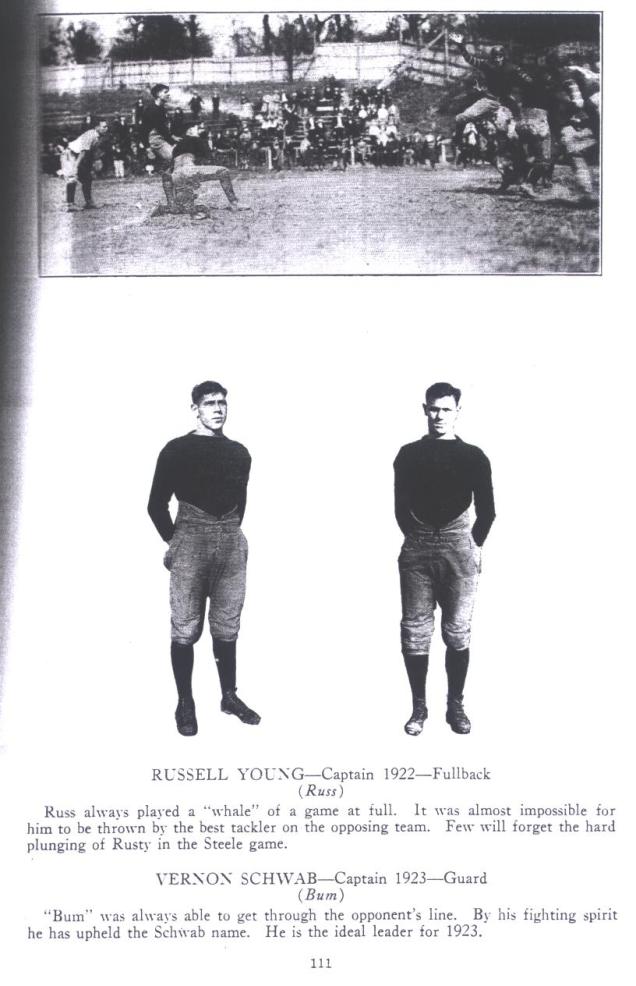 In 1922 the Tigers football team went undefeated at 8-0-1. The one tie was with Steele for the City Championship. The 1922 – 1923 basketball team was City Champs with a 12 – 5 record. In 1922 Russ was named to the All Southern (Ohio) basketball team.