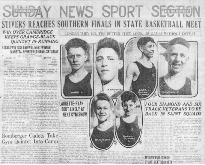 The 1919 Stivers Basketball Team never lost a game, winning 14 games in the regular season and 6 games in the State of Ohio Tourney in Delaware, Ohio. It was the Tigers’ second State Championship in 4 years. Coach Marquardt’s team was led by Fred Sifford and brothers, Harry and Harvey Schwab.