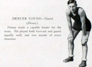 He was field general of Stivers’ football warriors, playing the quarterback position. Denny had considerable experience leading the teamon the floor as he was the acting captain…. Young held the second sacklocation during the baseball season just finished, and went through all the games without a slip up in the field. With the ash he made a creditable showing, hitting the ball hard and frequently.”